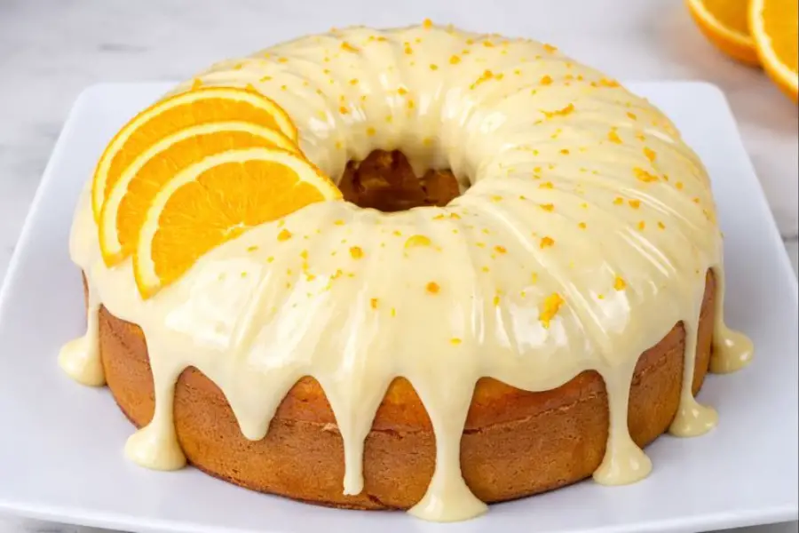 Volcá esta preparación sobre el budín ya frío, dejando que caiga de forma pareja por la superficie y los bordes. Mientras la cobertura aún está fresca, acomodá unas rodajas finas de naranja sobre uno de los laterales y espolvoreá apenas un poco más de ralladura para completar la terminación.