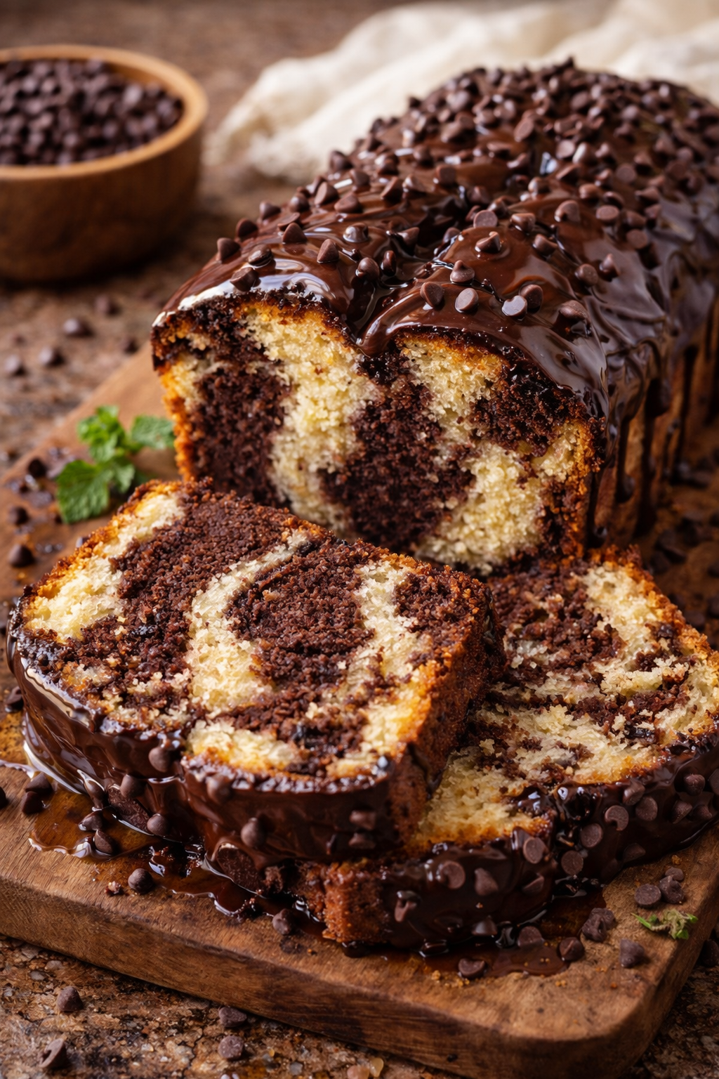 Queda perfecto para cortar en rodajas bien generosas, con el baño de chocolate por arriba y los chips sumando ese toque extra en cada bocado.