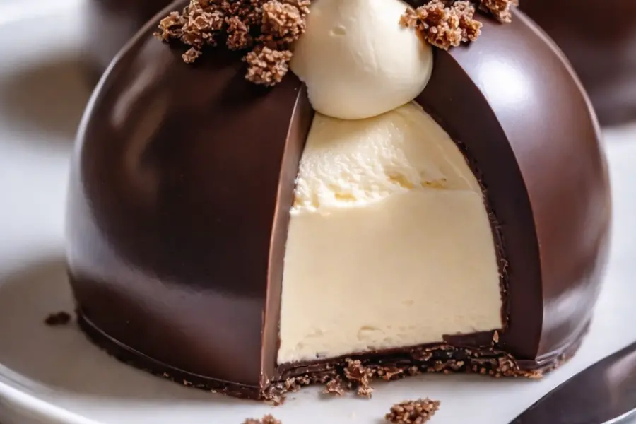 Este postre combina una cobertura de chocolate firme y brillante con un interior bien suave, cremoso y delicado.