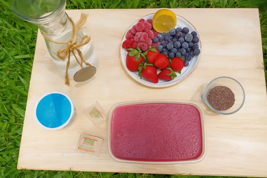 Combinan yogur, frutos rojos, chía y gelatina sin sabor, creando una textura suave y firme que se mantiene perfecta en la heladera.