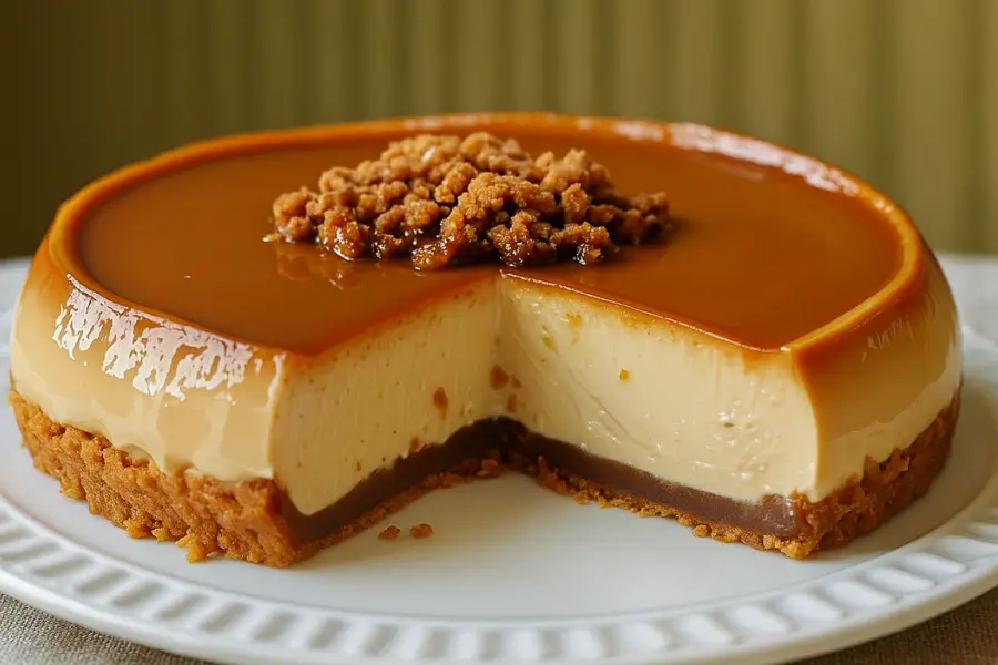 Este flan de galletas María tiene una textura cremosa y firme, con un caramelo brillante en la parte superior y el sabor clásico de las galletitas que todos conocemos.