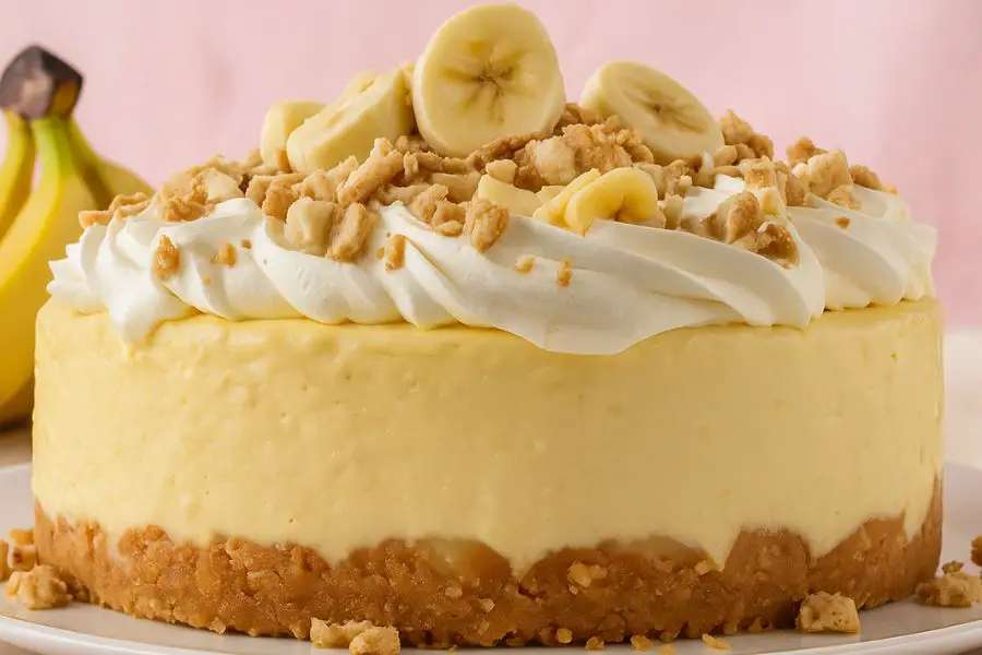No necesita horno, tiene una base de galletitas crocante y una cubierta de crema batida con rodajas de banana fresca.