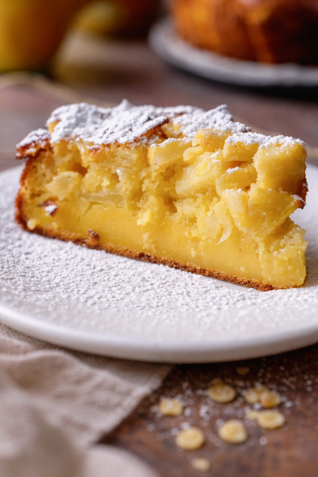 - Crea una base en el molde con rodajas de manzana, y sobre estas, vierte cuidadosamente la masa.