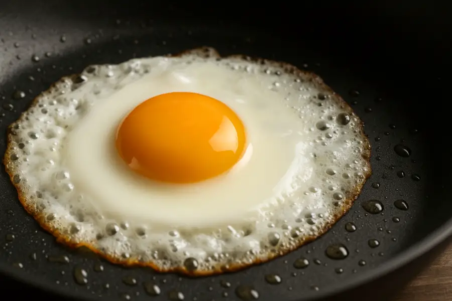 Se cocina en aceite bien caliente hasta que los bordes quedan crujientes y dorados, con una yema fluida en el centro. Es perfecto para acompañar carnes o arroz.