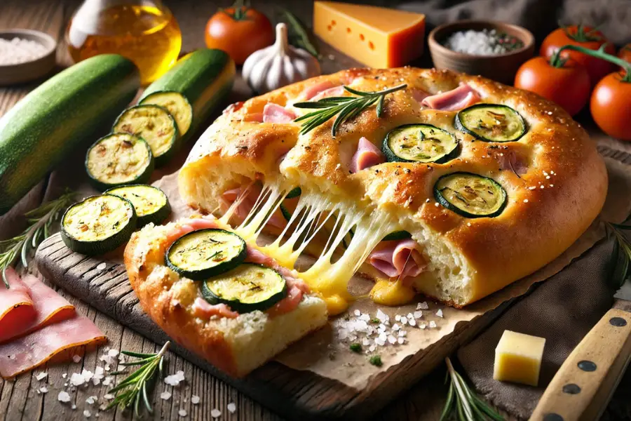 Con una masa suave y esponjosa, combinada con un relleno de jamón, queso y zucchinis, es perfecta para cualquier ocasión.