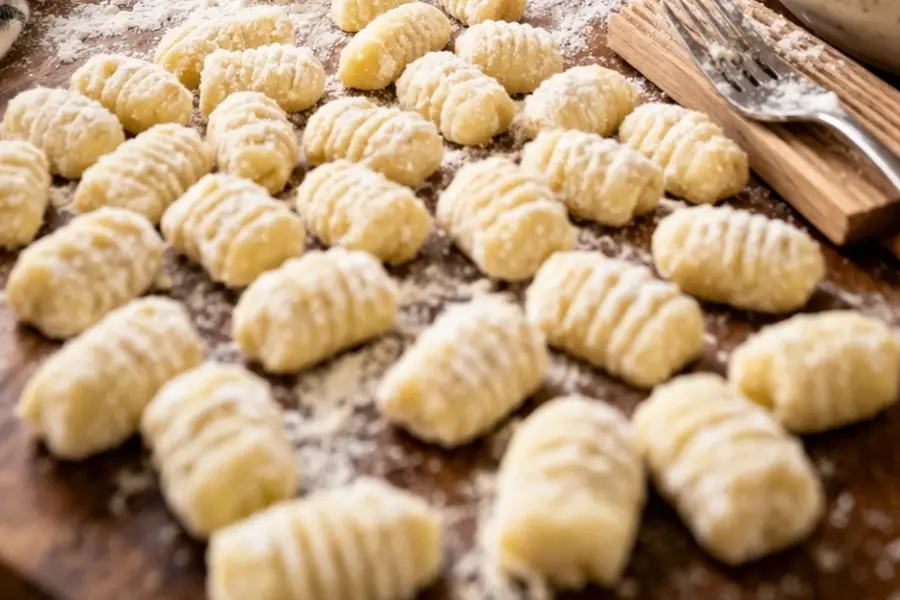 - No te excedas con la harina: es preferible que la masa quede apenas pegajosa antes que seca. Agregar harina de más es uno de los errores más comunes y hace que los ñoquis pierdan suavidad y queden densos.