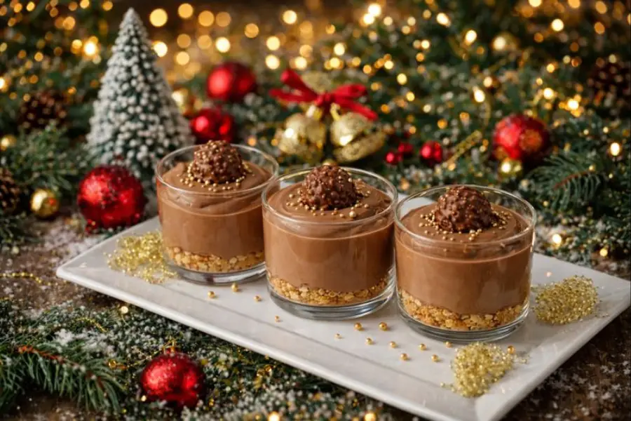 Cremoso, bien chocolatoso y presentado en vasitos individuales, es ideal para servir después de una cena festiva sin pasar horas en la cocina.