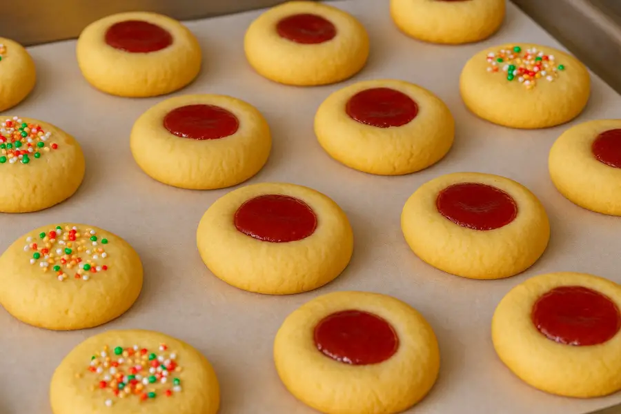 Si querés hacer las clásicas con mermelada, presioná suavemente el centro de cada bolita con el dedo y colocá un poco de mermelada apta para horno. También podés decorarlas con chispas de colores, coco o nueces picadas antes de hornear.