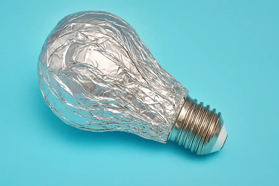 Tomá un pedazo de papel aluminio y envolvé una bombita LED para usar como molde redondo. Ajustá bien el aluminio para que conserve la forma.