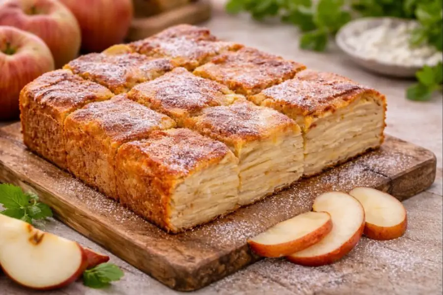 Una torta simple y casera, donde la manzana es la verdadera protagonista.