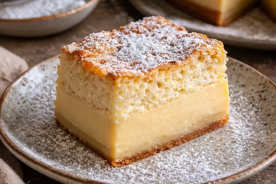 Esta torta es especial porque con una sola mezcla logra separarse en capas durante la cocción, creando una base cremosa y una parte superior esponjosa.