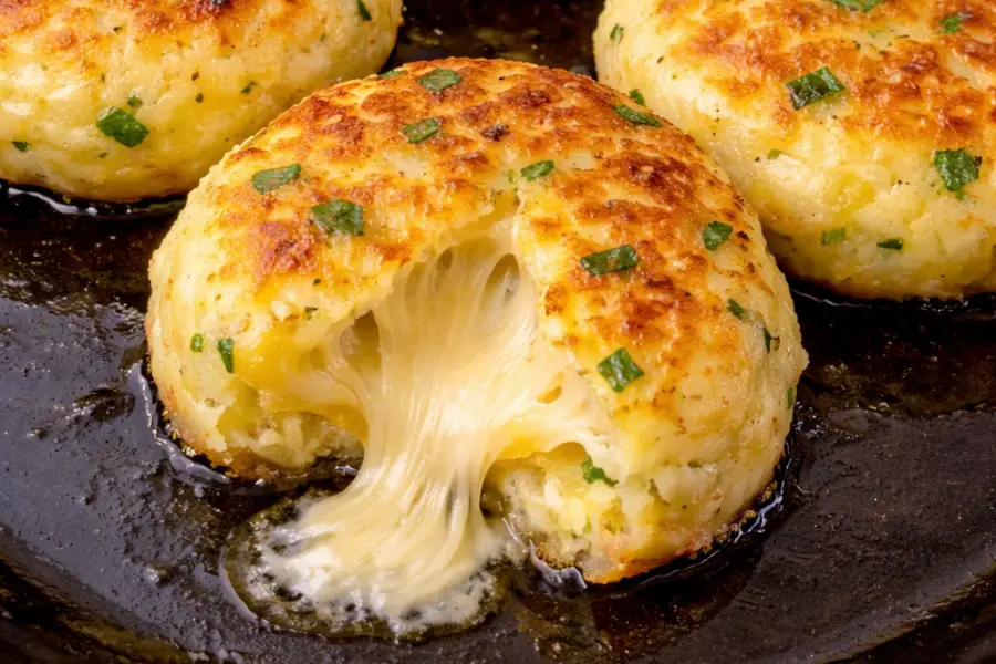 Estas tortitas quedan doradas en la sartén y esconden un relleno de queso que se funde y las vuelve irresistibles.